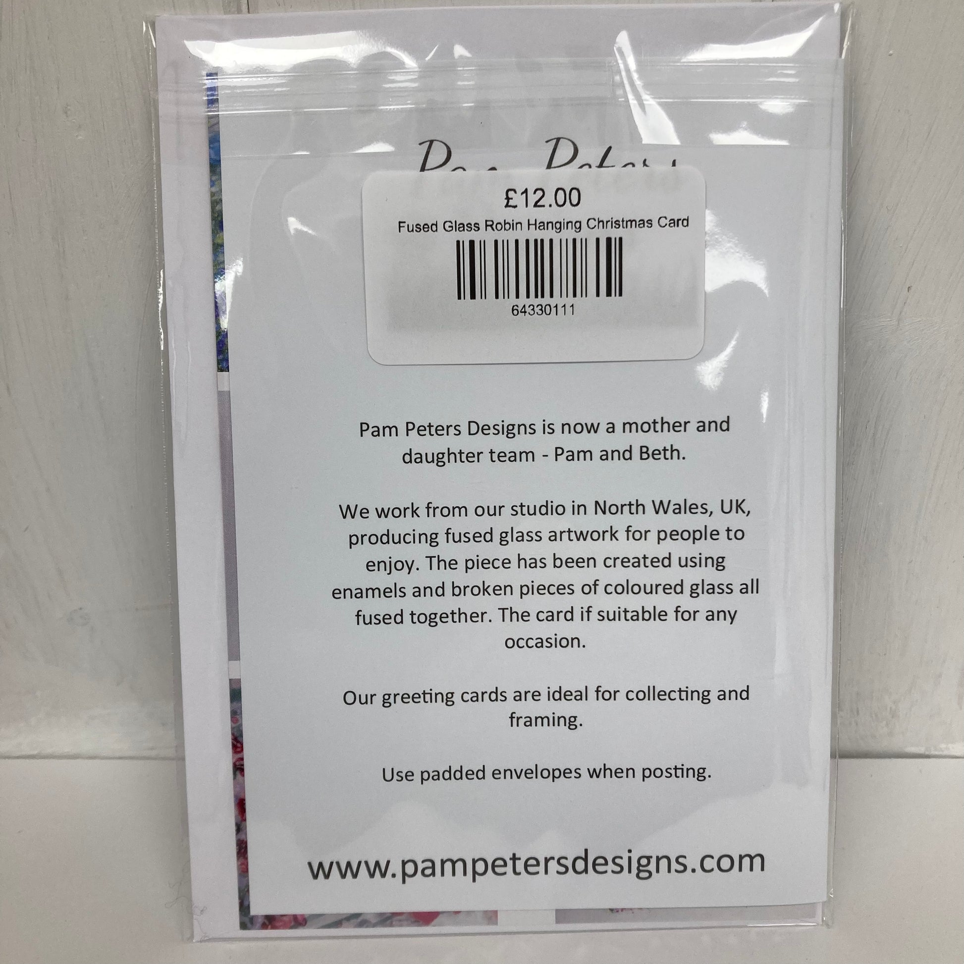 A blank, A6 Christmas Card with a handmade, fused glass tree decoration.