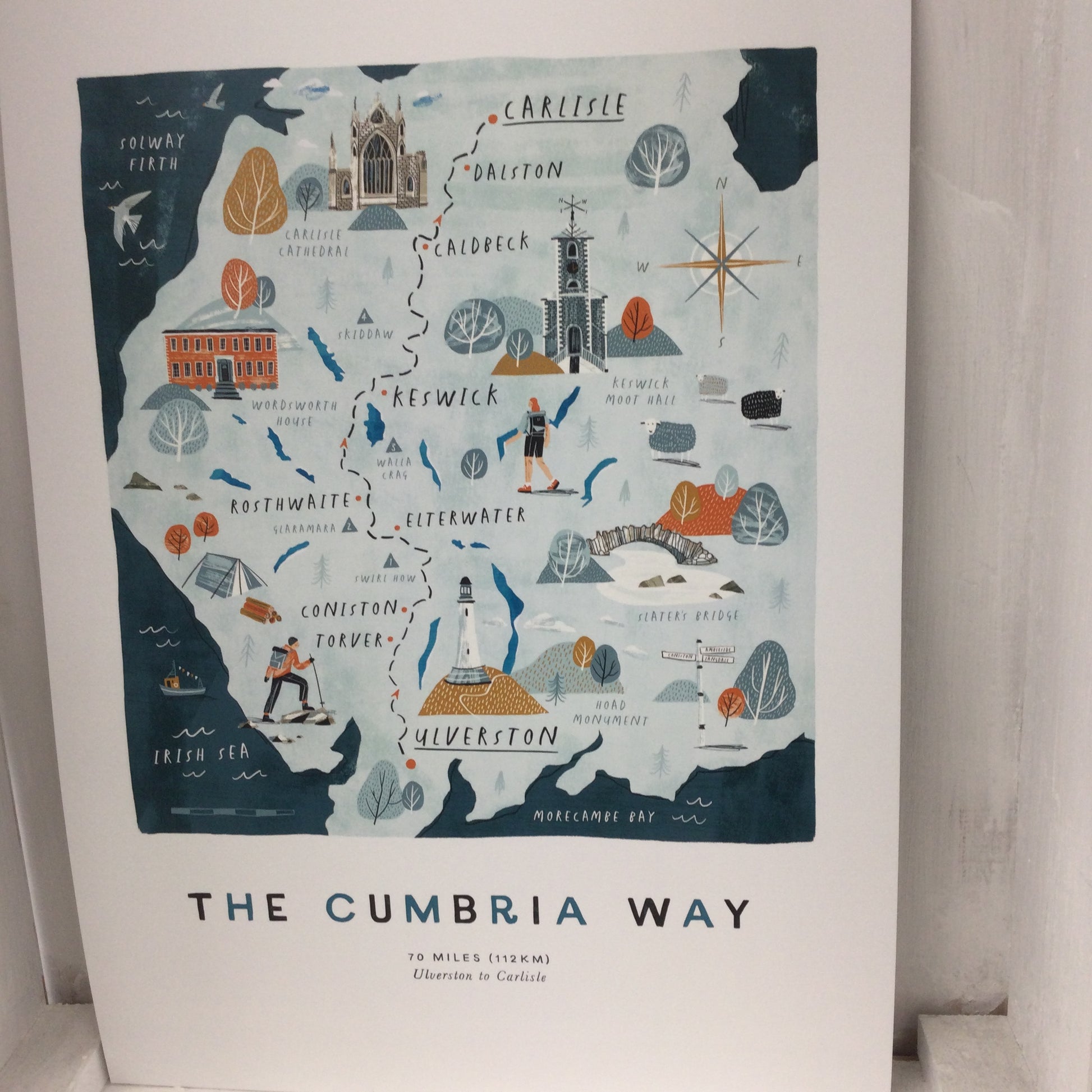 The Cumbria Way A3 Route Map with wooden Hanging Frame